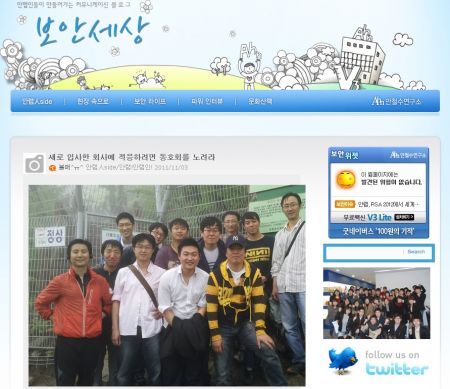한편, 안랩은 다양한 채널을 활용해 정보를 공유하고 공감대를 형성하고 있다. 기업 공식 블로그 ‘세상에서 가장 안전한 이름(http://blog.ahnlab.com), 김홍선 대표의 지식 블로그(http://ceo.ahnlab.com), 실시간으로 보안 위협에 대처하는 ASEC(시큐리티대응센터) 블로그(http://asec.ahnlab.com)를 함께 운영하며 IT 트렌드와 실시간 보안 상황을 전해왔다. 또한 기업 트위터(http://twitter.com/AhnLab_man), CEO 트위터(http://twitter.com/hongsunkim)로도 활발히 소통 중이다. <Ahn>