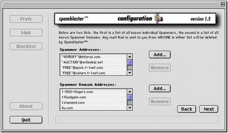 [그림] spamblasterTM 설정 화면. BlackList 기반의 차단 기능을 갖고 있음을 알 수 있다.