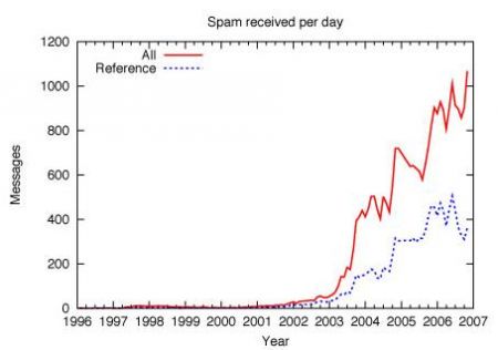 이메일 주소의 노출 정도에 따라, 이메일주소가 호스팅되고 있는 도메인의 유명세에 따라 약간씩은 달라질 것이다. 스팸네이션에 따르면, 하루당 수신되고 있는 평균 스팸량은 2007년 기준, 하루에 1000통 이상의 스팸이메일을 수신한다고 하니, 이 얼마나 많은 양인가?