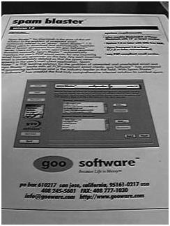 1997년 안티스팸 시장의 문을 연 spamblasterTM 제품에 대한 릴리즈 광고는 MacWeek 매거진에서 찾을 수 있다.