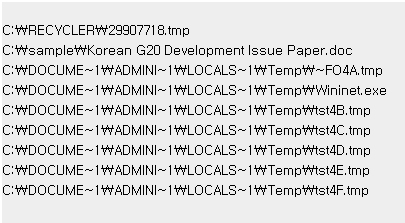 ‘Korean G20 Development Issue Paper.doc’ 파일이 위 그림에서 나타나는 문서입니다. 그리고 Run 레지스트리에 Wininet.exe 파일을 등록하여 시스템 재부팅 시 자동으로 실행이 되도록 합니다.