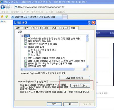 첫번째는 IE 환경 설정이 꼬인 경우, 혹은 IE 환경 설정이 변조 및 삭제된 경우입니다. 간간히 IE 환경 설정 및 프로그램이 꼬인 경우가 있거든요.