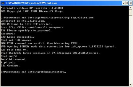 - XP용 IE8 설치파일을 원할 때: ftp> get(한칸 띄우고)ie8_xp.exe 입력
