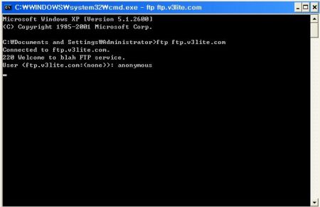 2. 커맨드 창에서 ftp ftp.v3lite.com 입력 ( C: 뒤의 경로는 PC에 따라 다를 수 있음)