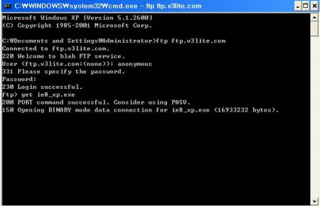 - XP용 IE8 설치파일을 원할 때: ftp> get(한칸 띄우고)ie8_xp.exe 입력