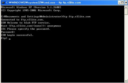2. 커맨드 창에서 ftp ftp.v3lite.com 입력 ( C: 뒤의 경로는 PC에 따라 다를 수 있음)