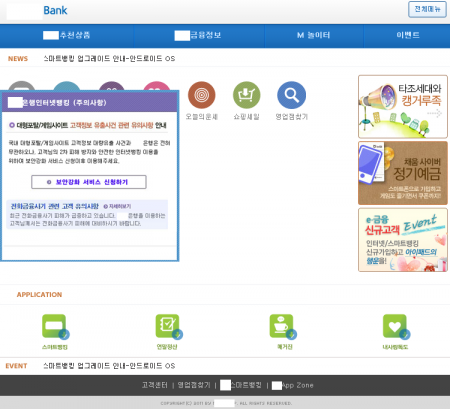 또한 올 상반기에는 온라인 뱅킹에 사용되는 금융 정보를 탈취하는 악성코드가 다수 발견됐다. 금융기관 피싱 사이트와 연동해 보안카드 비밀번호와 공인 인증서 정보를 탈취하며, P2P 프로그램과 취약한 웹 사이트를 통해 유포되었다.