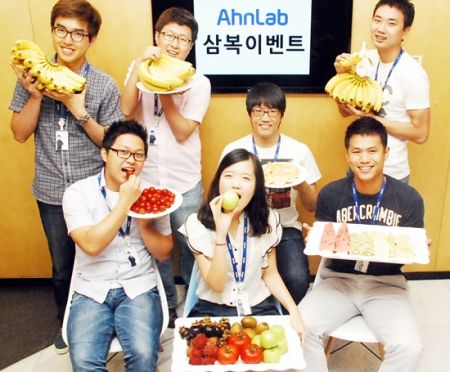 글로벌 보안 기업 안랩(대표 김홍선, www.ahnlab.com, 구 안철수연구소)은 계속되는 폭염 속에서 직원들의 더위를 달래주기 위한 이벤트로 ‘한여름의 과일 페스티벌’을 진행한다고 밝혔다.
