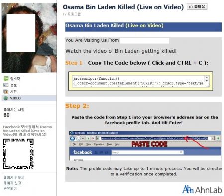 오사마 빈 라덴의 사망 소식이 있은 후 이슈를 틈타 관련 이슈를 궁금해하는 사람들에게 악성코드를 배포시키는 사회공학적 기법의 악성코드가 나와 전해드립니다. ASEC에서는 트위터(Twitter)를 통해 그의 사망 소식을 악용한 악성코드가 다양한 형태로 유포 될 가능성이 높음으로 주의가 필요하다고 언급하였습니다.