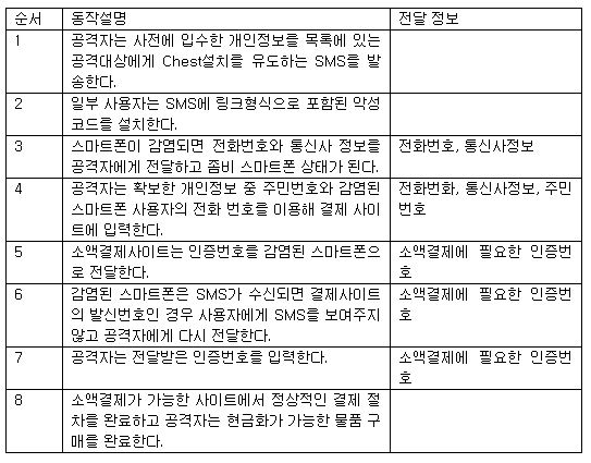 특히, 소액결제 시 반드시 필요한 인증번호 문자메시지가 직접 악성코드 제작자에게 전달되고, 사용자는 청구서가 나온 후에야 피해를 확인할 수 있다는 점, 대부분의 사용자가 핸드폰 사용 내역서를 꼼꼼히 살펴보지 않는다는 점에서 이후 유사한 피해가 추가 발생할 우려가 높다.