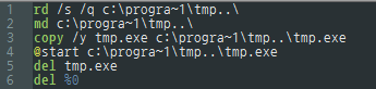 악성코드에 감염이 되게 되면 아래와 같은 Batch 파일을 생성 및 실행하여 '.' 이 들어간 폴더를 생성 후 실행하게 됩니다.