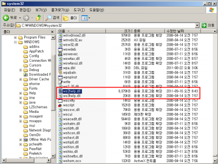 2) ws2help.dll 파일의 수정한 날짜가 변경되어 있는 경우, 혹은 ws3help.dll 파일이 존재하는 경우