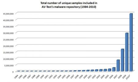 안녕하세요. 안랩인입니다. 오늘은 저멀리 독일에서 온 소식을 알려드리겠습니다. 독일의 악성코드 연구와 백신 제품 테스트 연구기관인 AV-Test에서 2010년 12월 31일을 기준으로 업데이트한 자료에 따르면 현재까지 발견된 악성코드 누적 수치가 약 4천 4백 만개 가량 된다고 밝혔습니다.