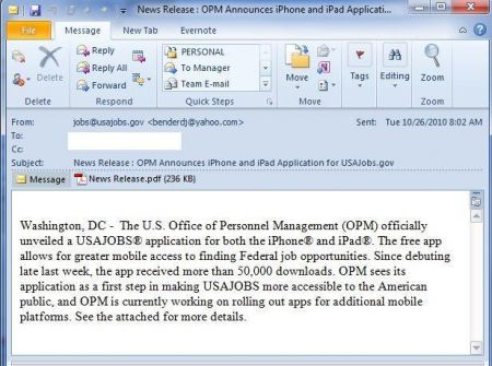 이번 어도비 플래쉬 플레이어에 존재하는 제로 데이 취약점은 타켓 공격에 악용되었으며 현재까지 알려진 타켓 공격으로 유포된 전자 메일 형식은 해외 보안 블로그인 "Contagio Malware dump"에서 공개한 다음 이미지와 같습니다.