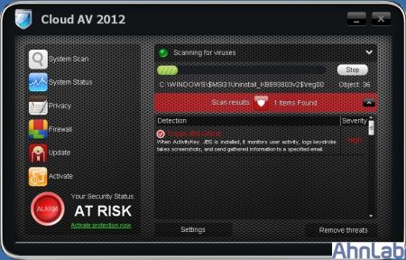 이 번에 발견된 허위 클라우드 안티 바이러스 2012는 과거에 발견되었던 허위 클라우드 백신과는 외형적인 인터페이스 부분만 변경되었지, 기능이나 동작면에서 동일한 형태를 가지고 있습니다.