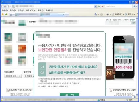 - 정상 인터넷 뱅킹 사이트에 접속해도 자동으로 가짜 뱅킹 사이트로 이동, 금융정보 탈취유도