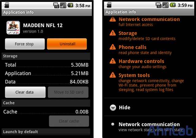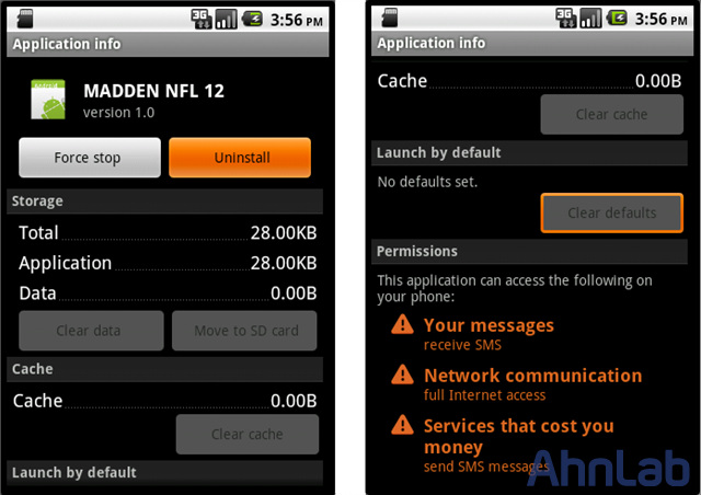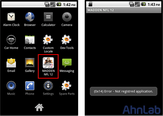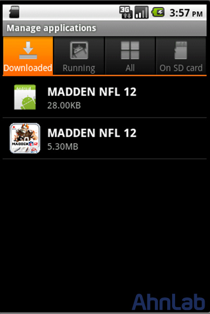 2. MADDEN NFL 12 로 위장된 악성 어플리케이션
