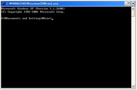 시작 => 프로그램 => 보조프로그램 => 명령 프롬프트를 실행합니다.