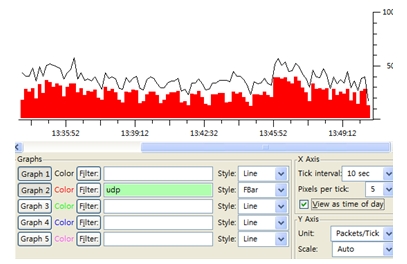[그림 1] 와이어샤크의 그래프를 통해 본 트래픽 흐름