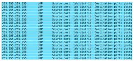 - UDP 목적지가 255.255.255.255이며 포트번호 5432가 많이 나타남