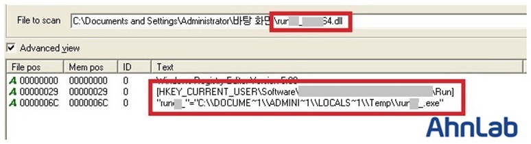 run***_*****64.dll 파일을 열어보면 그림 1과 같이 시작프로그램에 등록하기 위한 레지스트리에 등록하기 위한 명령어를 포함하고 있습니다. 확장명은 dll이지만 실제로는 텍스트 파일입니다. 이 명령을 통해 시작프로그램에 등록되어 사용자가 PC를 켤 때마다 악성코드가 동작하게 됩니다.