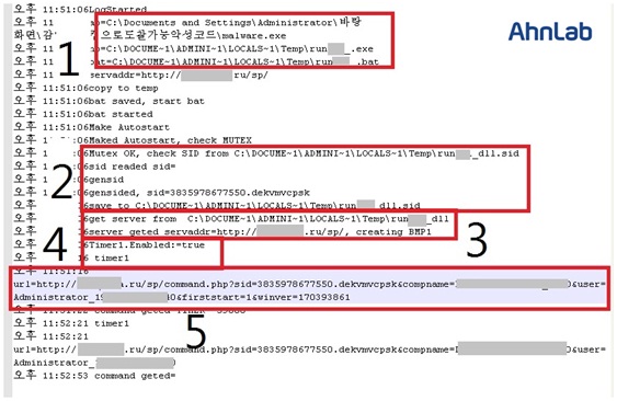 run***_.log 파일은 악성코드 동작 과정을 그림 4와 같이 log 파일에 기록합니다.