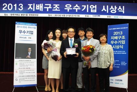 글로벌 정보보안 기업인 안랩(대표 김홍선, www.ahnlab.com)이 6월 20일 한국거래소에서 개최된 '2012 기업지배구조 우수기업' 시상식에서 '우수상'을 받았다.