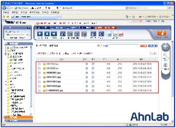 [그림 2] 웹 하드의 업로드 폴더 화면