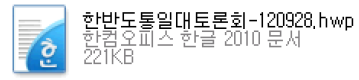 취약점이 있는 한글 문서는 '한반도통일대토론회-120928.hwp' 파일로, '북한의 개방 가능성 진단과 남북경색 해법 모색', '차기 정부에 바라는 대북 정책 제언' 등의 주제로 전 정부기관 차관 및 대학 교수 등으로 구성된 토론회 일정 내용이 담겨 있다.