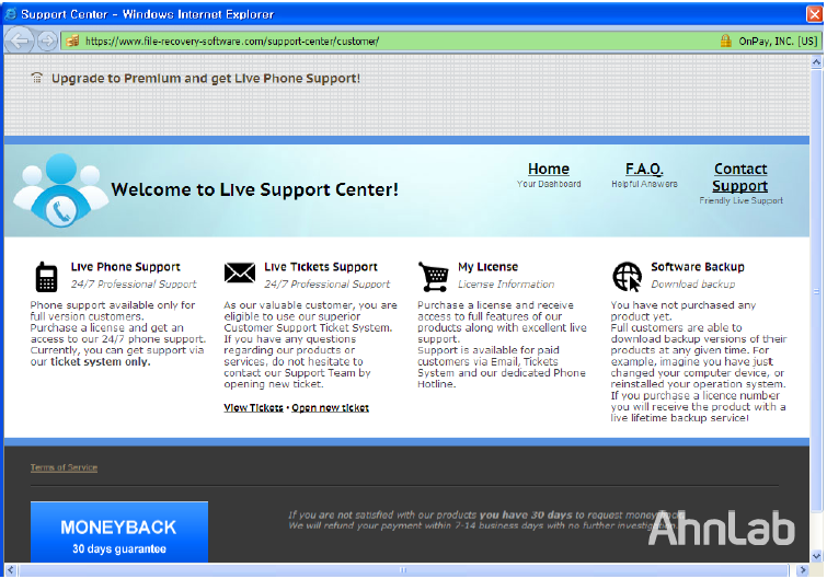 겉모양은 일반적인 안티바이러스 제품과 매우 유사하다. 실제로는 시스템에 악성코드가 존재하지 않음에도 불구하고 작업 표시줄 영역에 지속적으로 악성코드가 발견되었다는 메시지를 띠운다. 이후 불안한 사용자의 마음을 이용해 자연스럽게 결제를 유도하는 악질적인 악성코드의 한 종류이다. Ahn