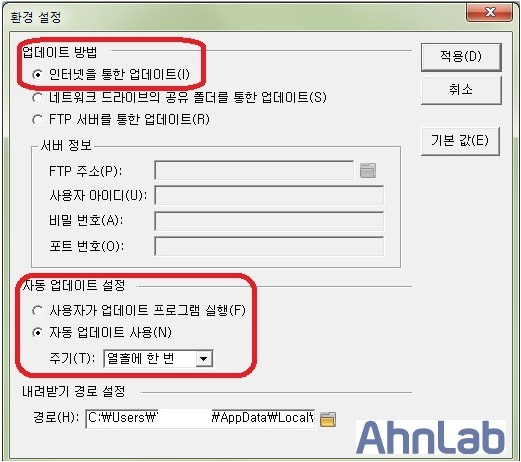 또한 [환경 설정] 창에서 [업데이트 방법]과 [자동 업데이트 설정]을 활성화하면 최신 보안 패치를 자동으로 업데이트할 수 있습니다.