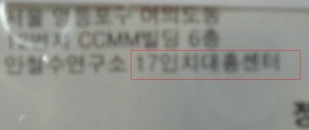 한 연구원이 고객으로부터 편지를 받았는데, 겉봉투에는 "17인치대흥센터"라고 써 있었습니다 @.@