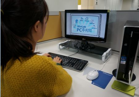 ▲안랩 직원이 PC주치의 컴퓨터를 직접 사용해보고 있다.
