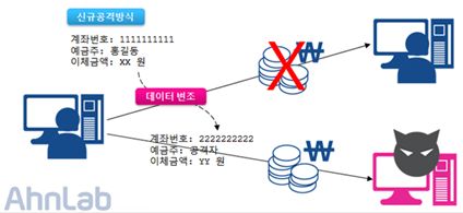 - 기존 메모리해킹 금융정보 유출에 더해, 이체 시 수신인 계좌번호/이체금액을 공격자가 원하는 계좌번호/이체금액으로 변경