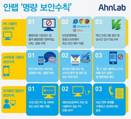- 여름 휴가철 PC 및 스마트폰 사용자, 기업/기관 보안담당자 등 3대 보안 계층을 위한 보안수칙 발표