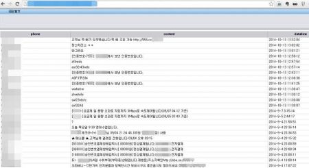 그림 2. 감염된 스마트폰에서 수집한 문자 메시지