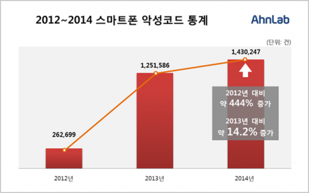 - 2014년 한 해 안랩이 수집한 스마트폰 악성코드 총 143만 247개로 보안위협 증가