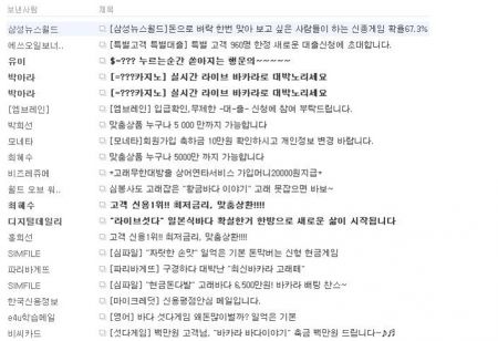 또한 블로그에 있는 댓글(comment)기능을 이용해서 여기에 온라인 사행성 사이트 홍보 문구를 작성하기도 한다. 다음은 실제 필자의 블로그에 달린 최근 댓글들이다. 조금만 방심하고 있으면 이렇게 온라인 사행성 게임 사이트를 홍보하는 댓글이 수도 없이 달린다.