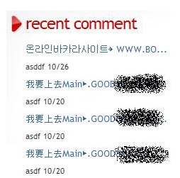 또한 블로그에 있는 댓글(comment)기능을 이용해서 여기에 온라인 사행성 사이트 홍보 문구를 작성하기도 한다. 다음은 실제 필자의 블로그에 달린 최근 댓글들이다. 조금만 방심하고 있으면 이렇게 온라인 사행성 게임 사이트를 홍보하는 댓글이 수도 없이 달린다.