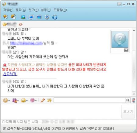 지난 주 필자의 인스턴스 메신저(Instant Messenger)로 후배가 평소와는 다르게 반말로 대화를 걸어왔다. 바로 요즘 유행하고 있는 메신저 피싱이다. 필자만 해도 이런 식으로 돈을 빌려 달라는 메신저 피싱을 4번이나 겪었으니 아마 인스턴스 메신저를 사용하는 대부분의 사용자들은 한번쯤은 겪었을 것으로 보인다.