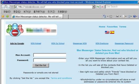 해당 서비스에 접속해 보면 메신저 아이디와 비밀번호를 입력하라고 나온다. 해당 사이트에 아이디와 비밀번호를 입력하면 지금은 서비스 할 수 없다고 나오거나 차단하거나 삭제한 친구가 없다고 나온다. 이런 서비스는 해당 인스턴스 메신저를 제작한 회사가 아닌 다른 곳에서 제작한 서비스로 정상 동작하지 않는다.