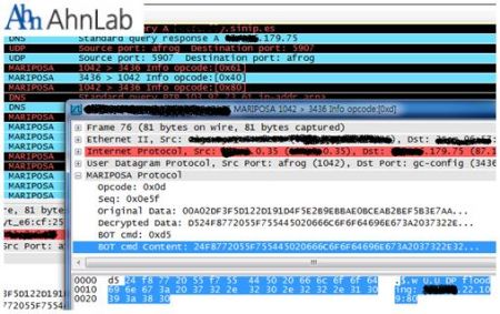 2009년 3월에 발견된 Mariposa 봇넷은 C&C 서버와의 통신에서 자체 암호화된 UDP 채널을 사용하는 대표적인 예이다. Mariposa 봇넷이 발생하는 UDP 트래픽은 암호화를 풀기 전에는 정확히 명령을 확인할 수 없지만, 악성코드 내부에서 사용하는 복호화 알고리즘을 통해 암호화를 해제하고 나면, USB, MSN 를 통한 악성코드 전파, UDP/TCP 플러딩 공격, 업데이트, 다운로드 및 실행과 같은 식별 가능한 명령들을 확인할 수 있게 된다.