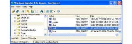 다른 예로는, 악성코드를 파일 대신 윈도우 레지스트리에 저장하는 방법이 있다. 금융정보 갈취 악성코드로 알려진 “Clampi” 웜에서와 같이 레지스트리는 악성코드가 중요한 설정정보를 저장하기위한 공간으로 활용되어 왔다. 그러나, 최근에는 간단한 설정정보 외에도 악성코드를 통째로 바이너리 데이터형태로 레지스트리에 저장해 놓는 사례도 발견되고 있다. 저장된 데이터는 추가적으로 암호화하거나 보안속성변경 및 권한설정을 해제하는 방식으로 또 한번 진단을 무력화시키기도 한다.