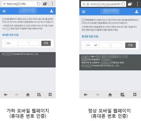 보충자료2 ) ‘휴대폰 번호 인증’ 위장 웹페이지 비교
