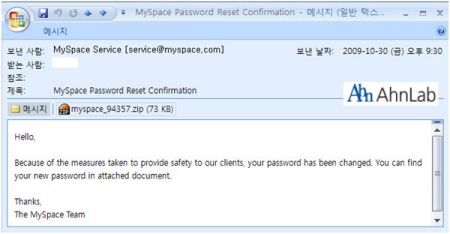 또한, 2009년 10월 27일부터 현재까지 대표적인 소셜 네트워크 서비스(Social Network Service)인 페이스북(Facebook)과 마이스페이스(MySpace)를 사칭하는 악성 이메일이 지속적으로 유포 중에 있다.@