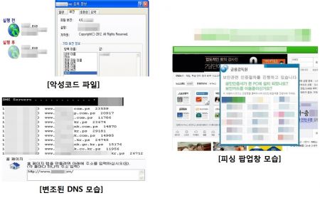 또한 사용자가 인터넷 주소를 입력하면 이를 실제 웹사이트와 연결시켜주는 기능을 하는 DNS(도메인네임시스템) 서버와 인터넷 시작 페이지 등을 변조해 (사용자가 인터넷 익스플로러(IE)를 실행하면) 공격자가 꾸며 놓은 가짜 페이지로 연결되도록 했다.