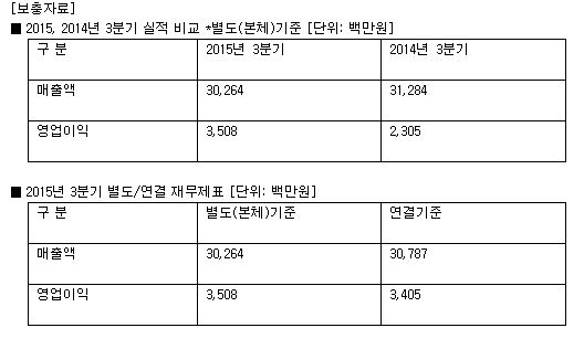 안랩(대표 권치중, www.ahnlab.com)은 2015년 3분기 별도기준으로 매출액 302억원, 영업이익 35억원(연결기준: 매출 307억, 영업이익 34억)을 각각 기록했다고 잠정 실적을 공시했다.