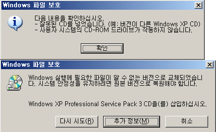 아래와 같이 Windows 파일 보호 창이 출력됩니다.