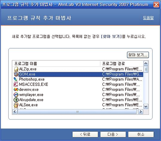 [그림 5] 프로그램 규칙에 추가할 프로그램 선택하기