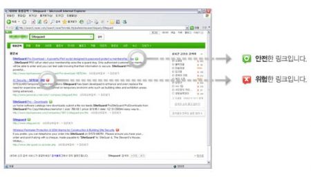 구글, 네이버, 다음 등 포털 사이트의 1차 검색 결과에 나타난 사이트들의 안전 여부를 사전에 아이콘으로 보여준다.